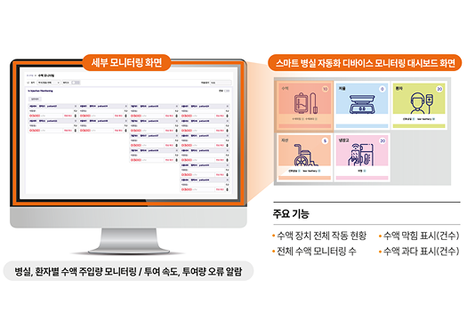 간호사 업무의 큰 부분을 차지하는 수액 투여를 자동으로 관리해 주는 서비스로 수작업으로 관리하던 수액