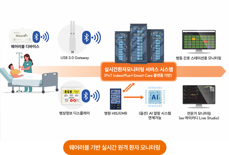 웨어러블 디바이스를 환자에게 부착해 심박수, 호흡수 등 주요 생체 신호를 실시간으로 수집하고, 이를