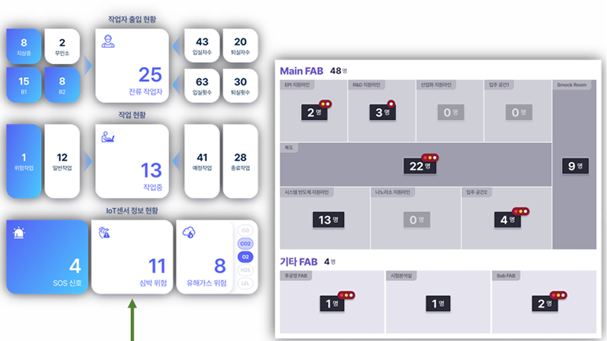 작업자의 출입 현황, 체류 시간, 이동 경로를 정확히 파악하여 인력 운영을 효율화하고