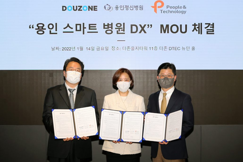 더존비즈온(대표 김용우)가 ‘용인 스마트병원 디지털 전환(DX, Digital Transformation) 모델’을 국내외에 확산하기 위해 용인병원유지재단(이사장 이효진), 피플앤드테크놀러지(공동대표 홍성표, 임진순)와 업무 협약(MOU)을 체결했다고 14일 밝혔다.