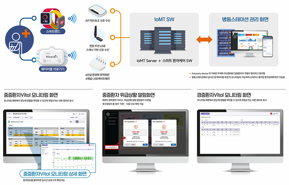 의료진이 실시간으로 환자의 상태를 모니터링하고 이상 징후 발생 시 시스템에서 자동으로 의료진에게 알림이 전송돼 응급 대처 시간이 단축되고 조기 대응이 가능해진다.