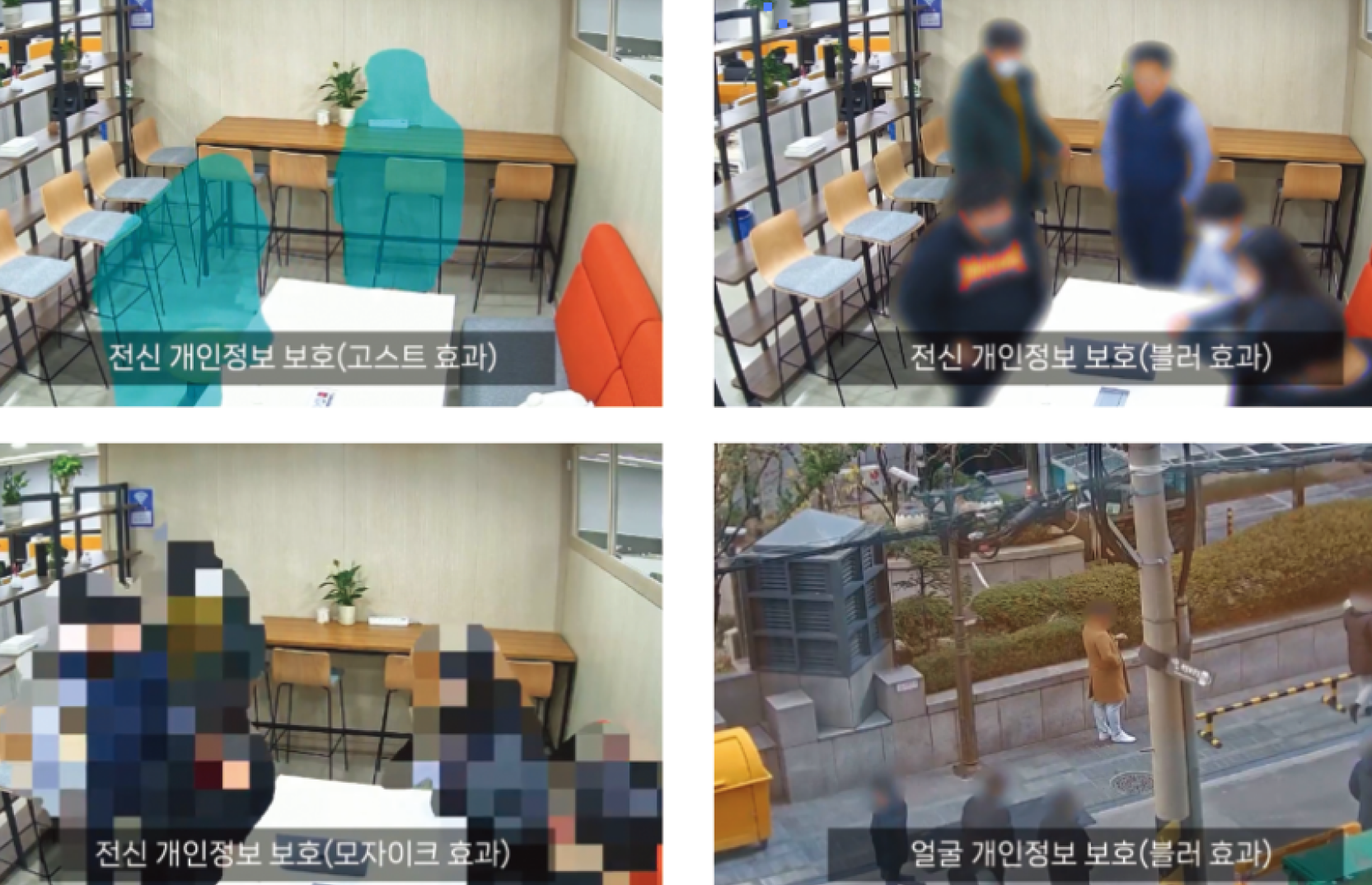 - 환경에 따른 마스킹 효과 선택: 블러, 모자이크, 고스트 등 다양한 마스킹 옵션 제공