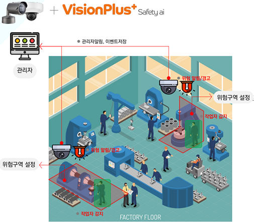 VisionPlus+ Prima는 프라이버시 보호, 산업재해 예방, 물류 현장 안전까지 아우르는 AI 기반 스마트 영상 분석 솔루션입니다.