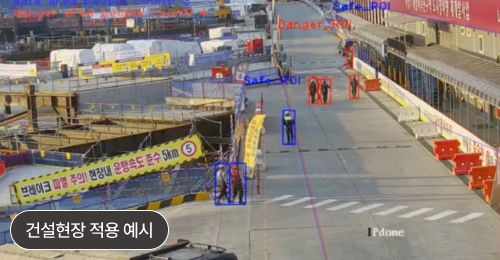 원본 영상과 마스킹 영상을 동시에 제공해 다양한 운영 방식에 유연하게 대응합니다. 산업현장에서는 실제 펜스 없이도 지정 영역을 설정해 작업자의 안전모 착용 여부, 진입·진출·체류 상태를 감지하고,