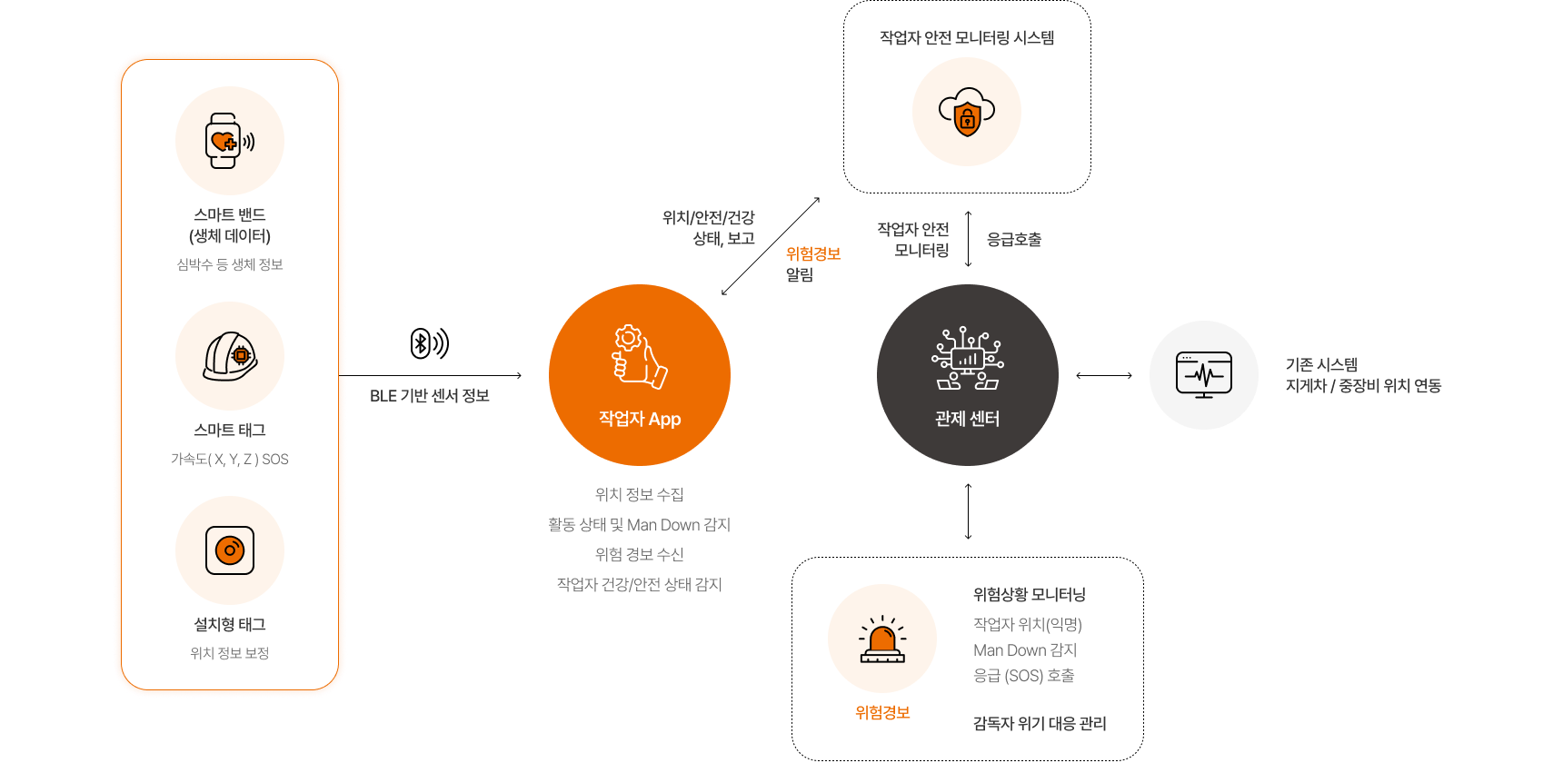작업자의 현재 위치와 건강상태를 실시간으로 모니터링하여